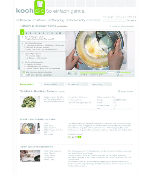 Gestaltung einer Website zur Präsentation von Kochrezepten mit anschaulichen Videos